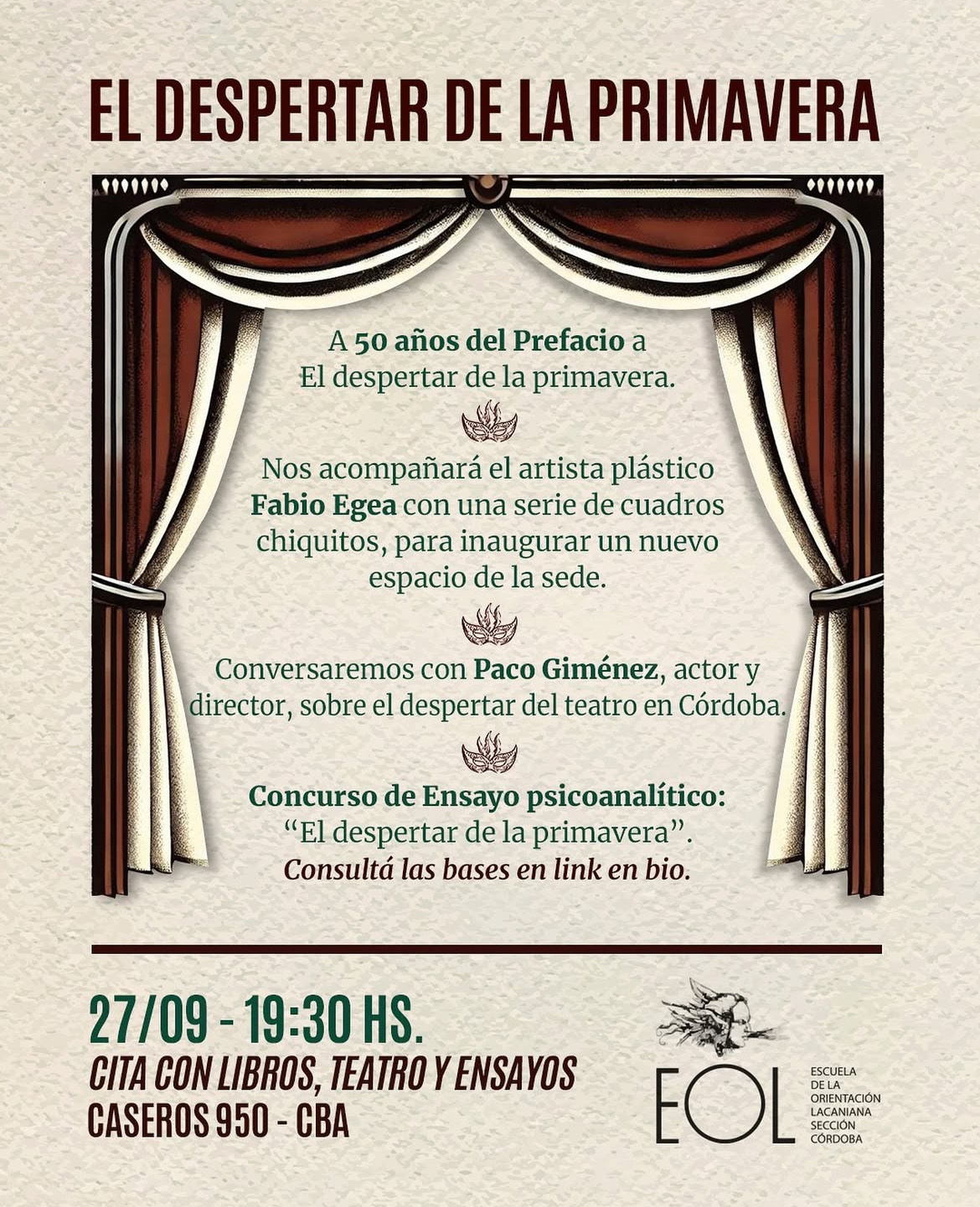 A 50 años del prefacio escrito por Jacques Lacan a la obra de Wedekind “El despertar de la primavera. Tragedia infantil”, el viernes 27 de septiembre de 2025, se realizó una cita con libros, teatro y ensayos
